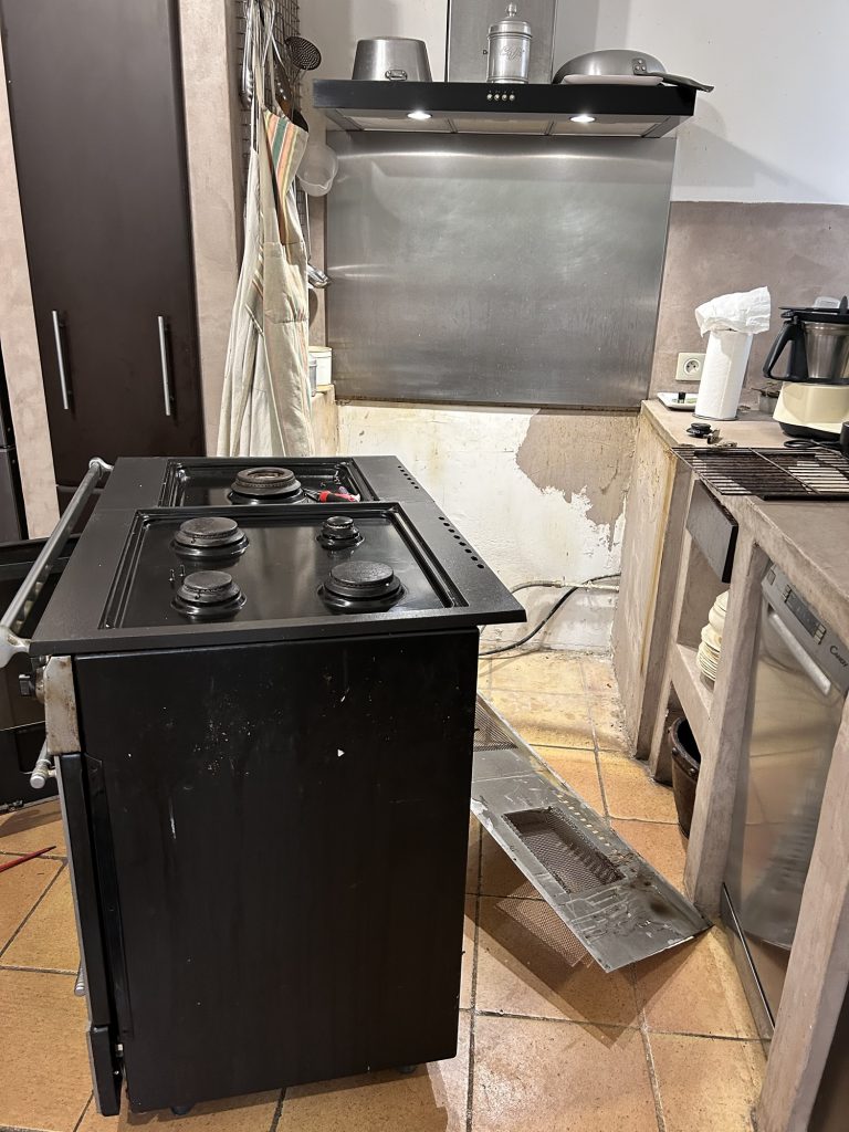 Lors du diagnostic, nous avons commencé par contrôler l’ensemble des foyers gaz. Certains brûleurs du piano Godin présentaient une flamme instable et un allumage irrégulier. Nous avons réalisé un réglage précis du débit gaz, indispensable pour assurer une combustion correcte, une montée en température homogène et une totale sécurité d’utilisation.