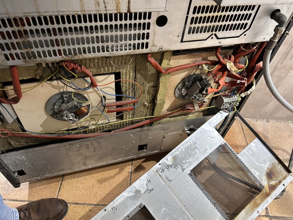 Le contrôle des deux fours STEEL a ensuite permis d’identifier précisément l’état de chaque cavité. Le petit four droit fonctionne parfaitement, avec une régulation thermique stable et une cuisson homogène. En revanche, le four gauche présentait une panne avérée : résistance de chaleur tournante hors service ainsi qu’un défaut de résistance de sole. Un devis détaillé a été établi pour le client, incluant les pièces adaptées à la marque STEEL et une intervention conforme aux standards constructeur.
