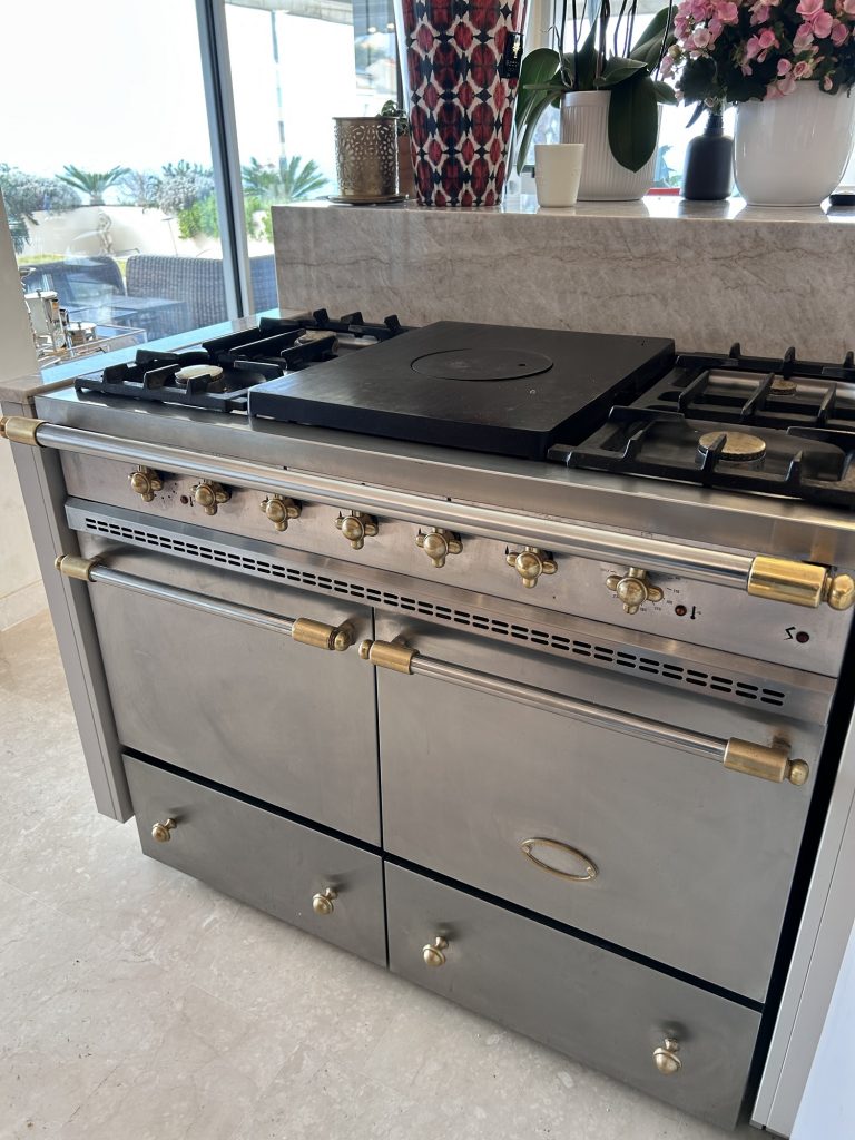 Le propriétaire, élégant et discret, m’accueille d’un signe de tête. Ici, chaque geste compte. Pas de longs discours : le silence est un luxe que l’on cultive. Je pénètre dans la cuisine. Le piano de cuisson trône au centre, massif, impeccable, témoin de dîners raffinés et de souvenirs partagés. Un modèle d’exception, patiné par le temps, dont la valeur dépasse celle des matériaux qui le composent.